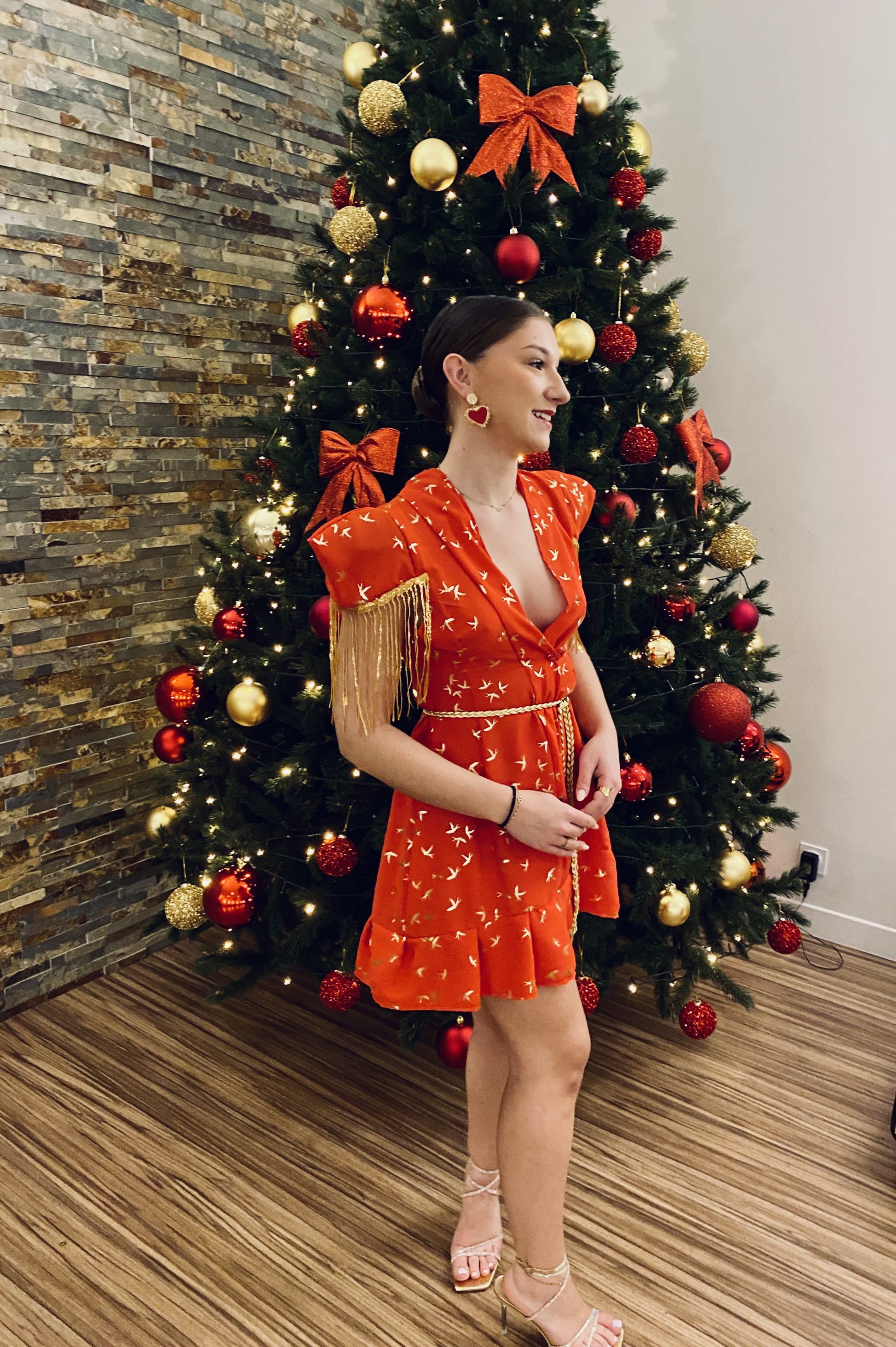 Mini robe rouge et or Ă volants col V avec son imprimĂ© et ses manches uniques, lâoriginalitĂ© incarnĂ©e pour une soirĂ©e inoubliable !  DĂ©tails raffinĂ©s : frange dorĂ©e, bijou lĂšvres rouge, manches courtes et coupe trapĂšze sensuelle. MatiĂšre polyester de haute qualitĂ©, Ă la fois chic et lĂ©gĂšre. Entretien facile : lavage Ă 30 degrĂ©s recommandĂ©. PiĂšce exclusive produite Ă seulement 7ïžâŁ exemplaires, confectionnĂ©e avec passion en France.